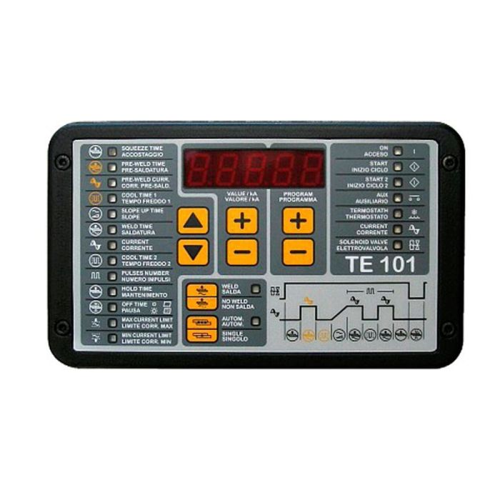 - Two-stage electric foot pedal that besides its normal use in automatic and single spot mode allows the operator to bring the pieces together and to weld them only when correctly positioned